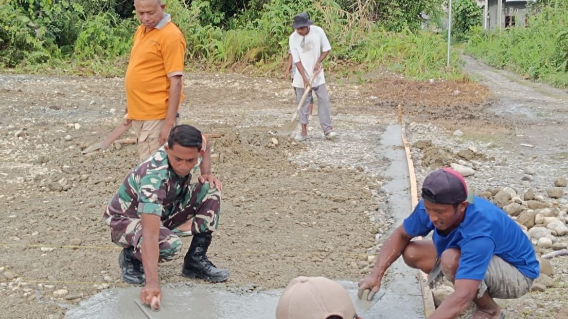 Timika – Militer Post | Babinsa Koramil 02/Timika Kodim 1710/Mimika, Sertu Rusdin Wali bersama warga desa melakukan kerja bakti pembuatan sarana olahraga lapangan bola voli di Kampung Mawokau Jaya, Distrik Wania, Kab. Mimika. Rabu (10/7/2024).