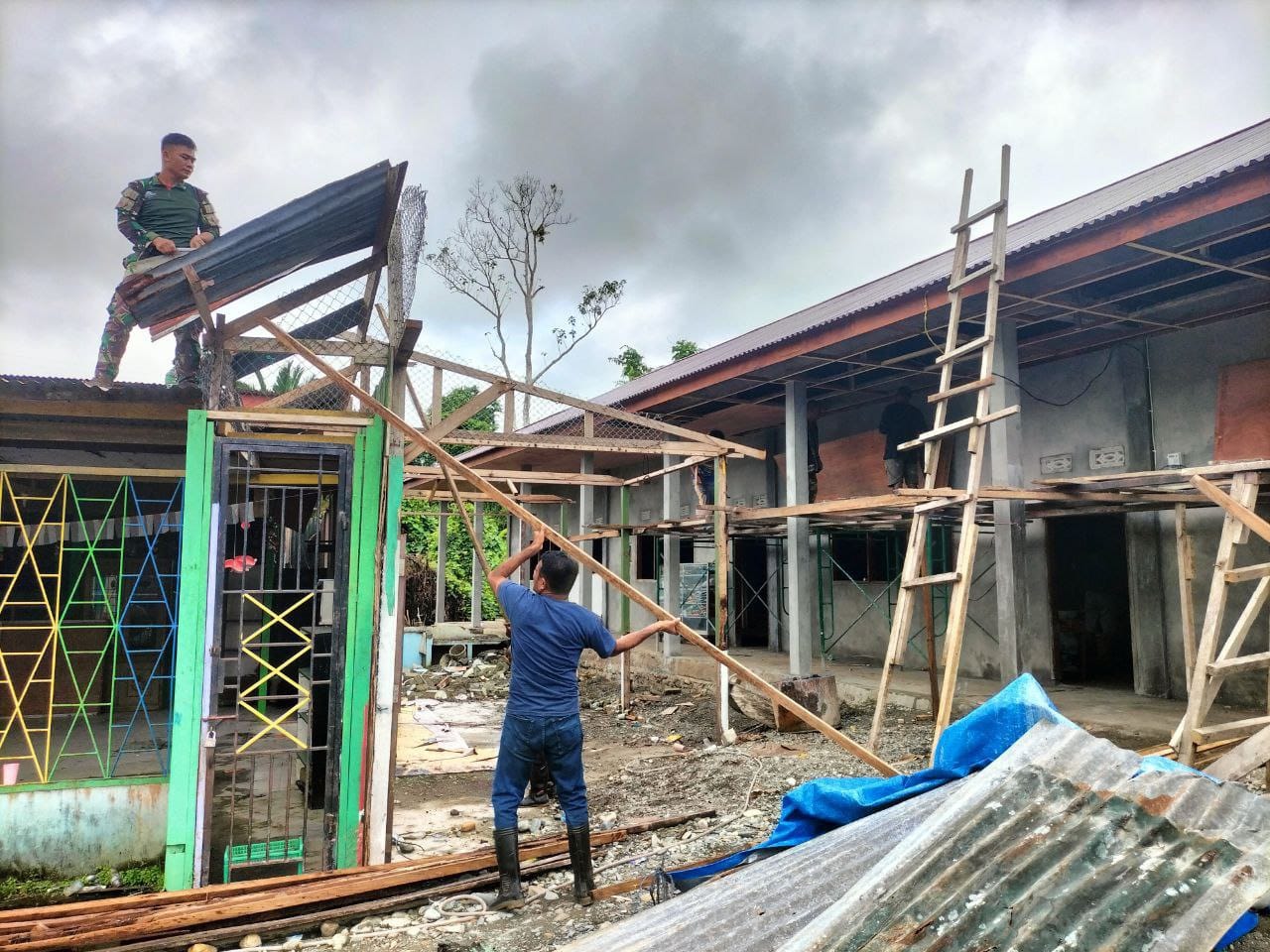 Kegiatan karya bakti ini difokuskan pada pembongkaran bangunan lama untuk diperbaiki karena kondisi bangunan lama sudah banyak kerusakan dan rawan roboh yang bisa berbahaya bagi anak-anak. Pembangunan ini pun dilakukan untuk mempercepat proses pembangunan nantinya, sehingga diharapkan bantuan yang diberikan oleh Koramil dapat memangkas waktu menjadi lebih cepat. Babinsa dan para tukang pun terlihat semangat saling bahu membahu dalam merehab bangunan sekolah tersebut.