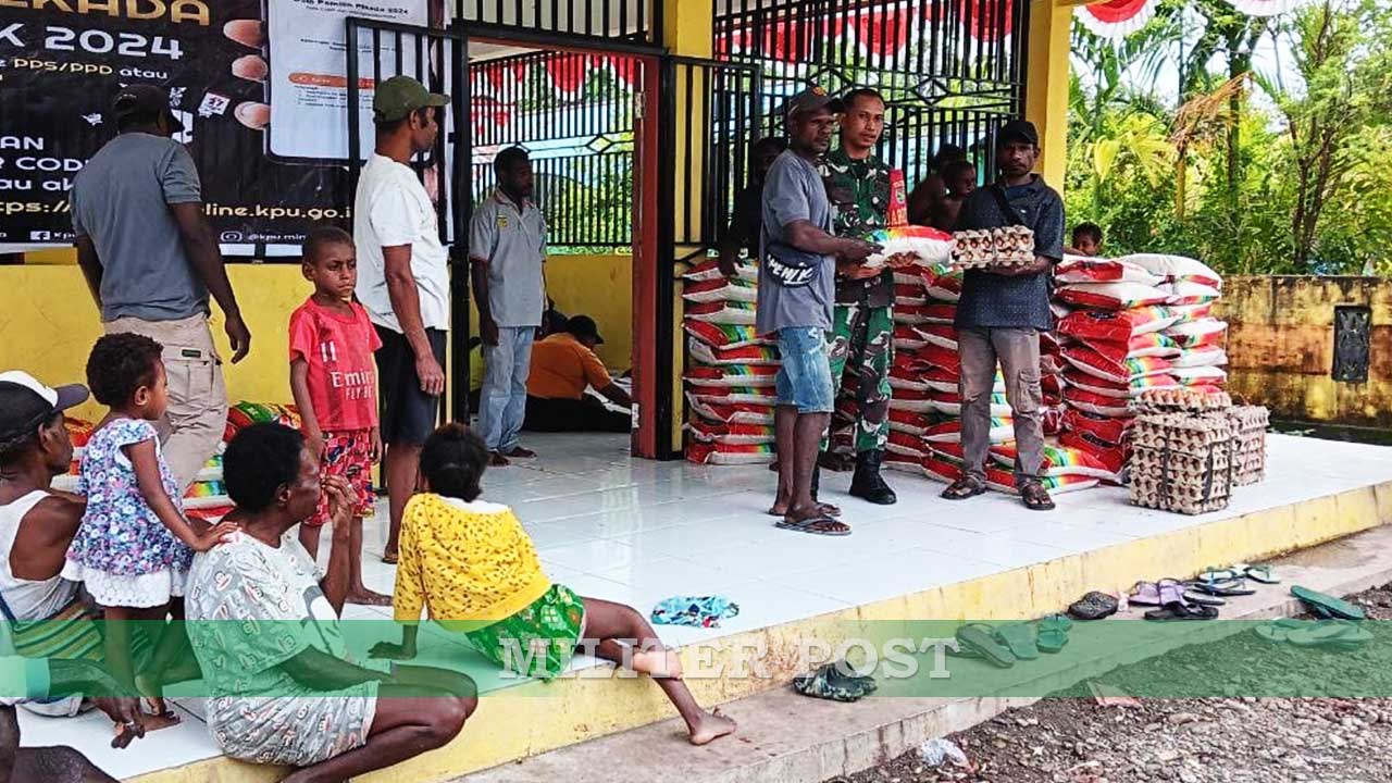 Sertu Tangkas turut membantu salurkan bantuan kepada masyarakat korban banjir bersama Dinas Ketahanan Pangan Kabupaten Mimika, Kamis (22/08/2024) hari ini. Kegiatan tersebut dilaksanakan di Balai Kampung Muare, Distrik Mimika Timur, Kabupaten Mimika, dengan membagikan sekitar 200 karung beras ukuran 10 kg dan 21 rak telur kepada masyarakat.