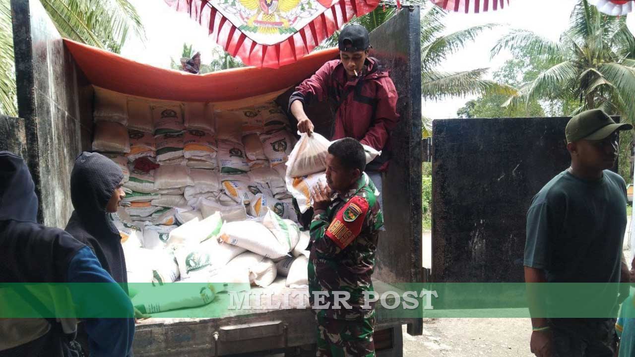 Kehadiran Sertu Yulius Nampe selaku Babinsa setempat yaitu memonitoring sekaligus memastikan penyaluran Bantuan Sosial (Bansos) berupa beras Bulog dapat berjalan dengan tertib dan sesuai sasaran.