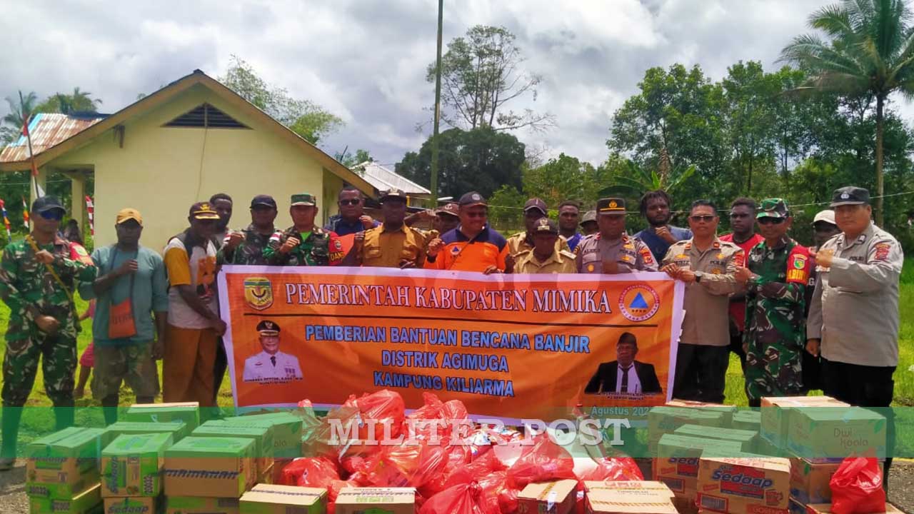 Timika – Militer Post | Koramil 1710-06/Agimuga, Kodim 1710/Mimika dibawah pimpinan Danramil Lettu Inf Rumayom bersama Badan Penanggulangan Bencana Daerah (BPBD) Kab. Mimika langsung melakukan peninjauan dan memberikan bantuan sembako kepada masyarakat yang terdampak banjir akibat hujan intensitas tinggi di Kp. Faka Fuku dan Kp. Masasimamo Distrik Agimuga, Kab. Mimika, Selasa (20/08/2024) kemarin.