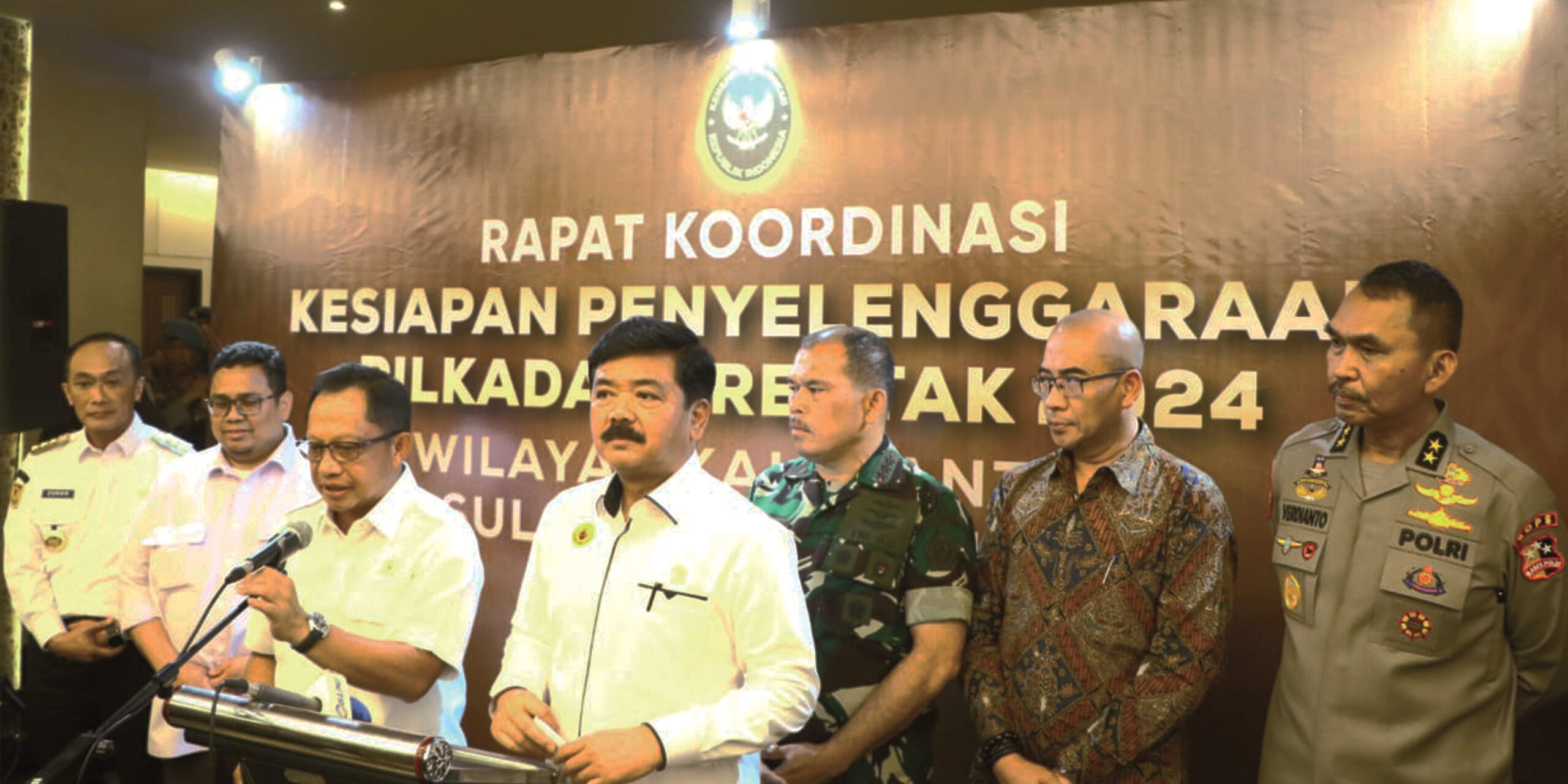Rakor itu dibuka langsung Menteri Koordinator Bidang Politik, Hukum dan Keamanan Indonesia Marsekal TNI (Purn.) Hadi Tjahjanto. Rakor Kesiapan Penyelenggaraan Pilkada Serentak Tahun 2024, dihadiri juga oleh Mendagri RI Jenderal Polisi Prof. Drs. H. Muhammad Tito Karnavian, B.A., M.A., Ph.D., Ketua KPU RI Hasyim Asy’ari, S.H., M.Si., Ph.D., Ketua Bawaslu RI Rahmat Bagja, S.H., LL. M. Kabaharkam Polri Mohammad Fadli Imran, M.Si., mewakili Kapolri dan Pangkogabwilham II Marsdya TNI M. Khairil Lubis mewakili Panglima TNI.
