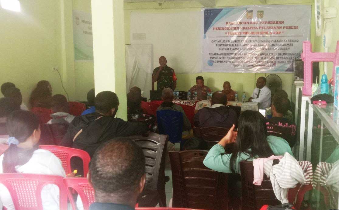 Timika – Militer Post | Babinsa Koramil 1710-05/Jila Sertu Niko Kararbo dan Pratu Kelvin menghadiri kegiatan sosialisasi tentang SOP penyakit malaria yang digelar oleh Puskesmas Jila kepada warga masyarakat Kp. Pasir Putih, Distrik Jila, Kab. Mimika, Jumat (26/07/2024).