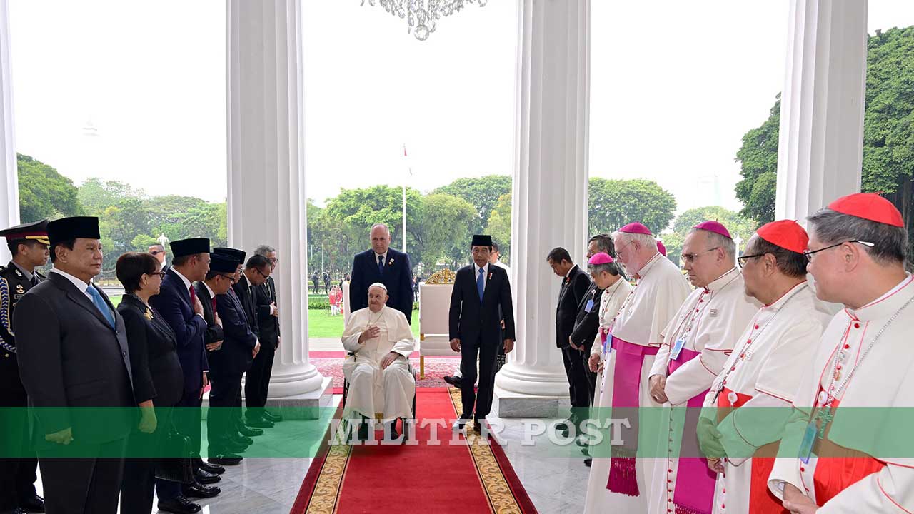 Rombongan Paus Fransiskus tiba di Istana Merdeka dan disambut dengan kehangatan. (Foto:Kemhan RI)