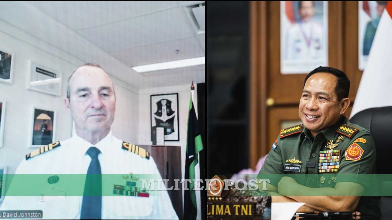 Jenderal TNI Agus Subiyanto dan Laksamana David Lance Johnston sedang melakukan Video Conference. (Foto:Puspen TNI)