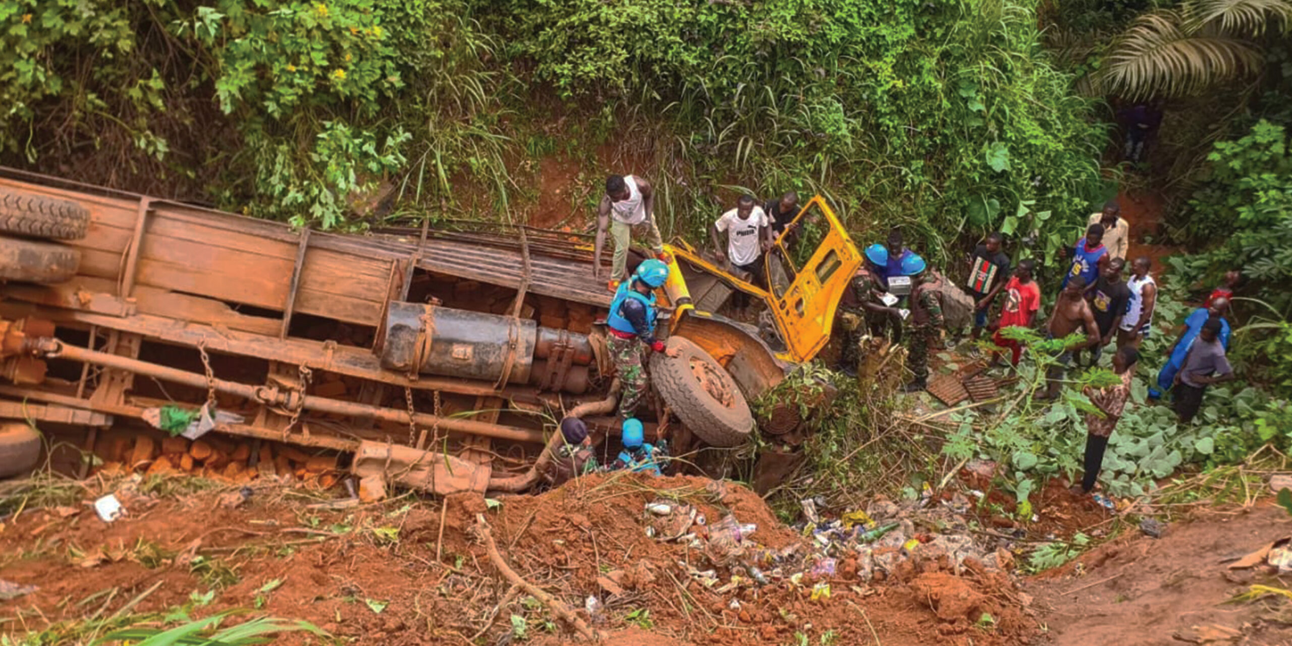 Berberati – Militer Post | Satgas Kizi TNI Konga XXXVII-J MINUSCA  membantu evakuasi truk yang terguling kedalam jurang sedalam 8 meter yang berlokasi di jalan Pasar Besar sektor TOB Berberati, Minggu (23/06/2024).